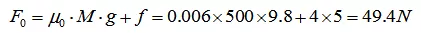F0 — 导轨静摩擦力,F0=49.4N