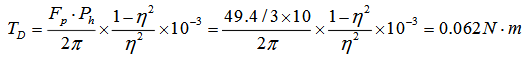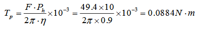 Fp— 滚珠丝杆副间的预紧力,Fp = F max/3 = 49.4/31 = 6.47N