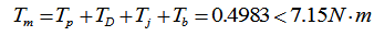 所选择电机额定扭矩为7.15N.m,大于计算电机总扭矩3倍以上。所选择电机扭矩符合要求。